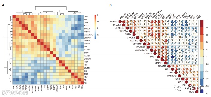 3.通过相关性分析、组织特异性基因表达、GO和KEGG通路富集分析和蛋白质-蛋白质相互作用(PPI)对差异表达的自噬相关基因进行分析(花样在此)。