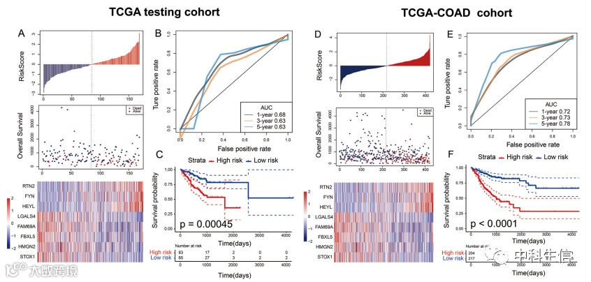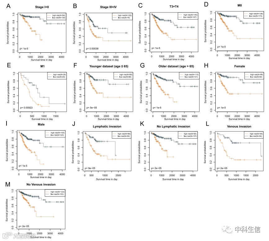 分别在TCGA,GSE17538 和GSE17536数据集中对模型进行验证。