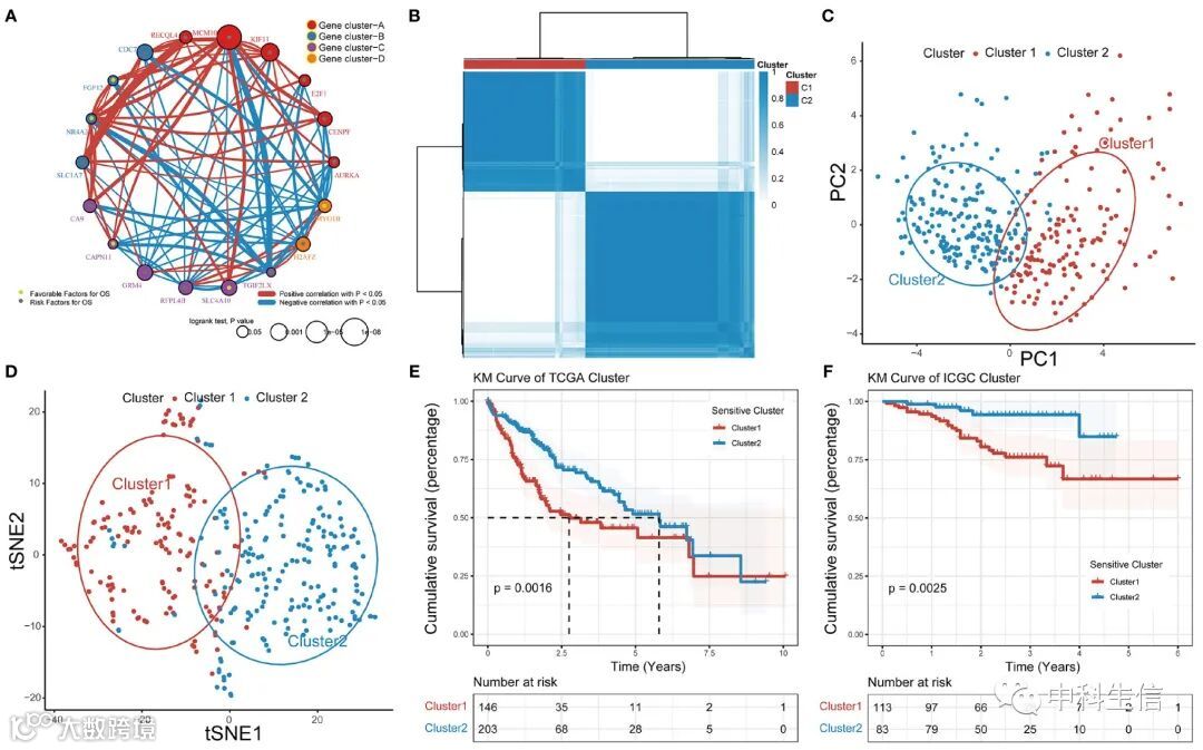 基于 TCGA-LIHC使用ConsensusClusterPlus包根据18 个 GSTTK进行无监督聚类分析,确定了四种不同的模式并比较不同簇之间的生存差异以及临床预后价值。为了验证 TTK 模式ICGC数据和GEO数据重复了无监督聚类分析。