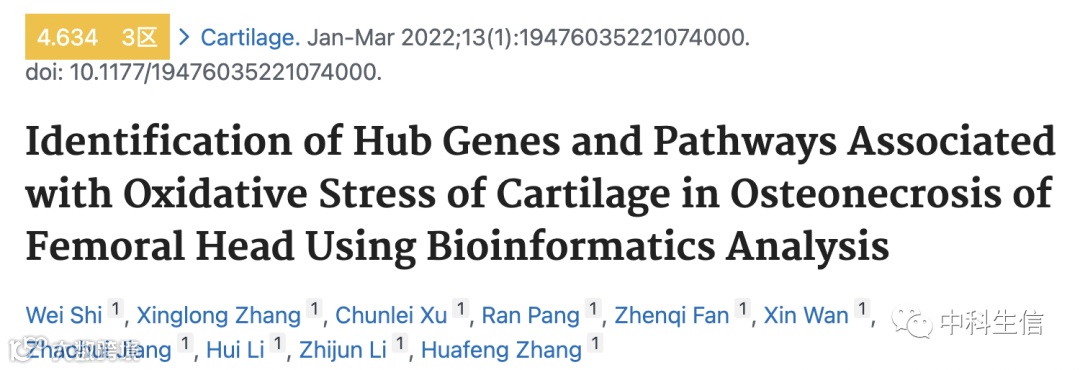 早上好,小编最近也在整理适合非肿瘤疾病研究的方向,除了万用的免疫方向,小编发现氧化应激也适合多数的非肿瘤疾病,这不今天分享的就是一篇2022年2月4号发表在Cartilage(IF=4.634)的文章(Ref: 35118903),作者研究的是股骨头坏死患者中氧化应激的相关功能。该方向同样适用于心血管疾病、糖尿病、过度肥胖、骨病等其他常见病的研究,有相关需求的老师欢迎联系我们!