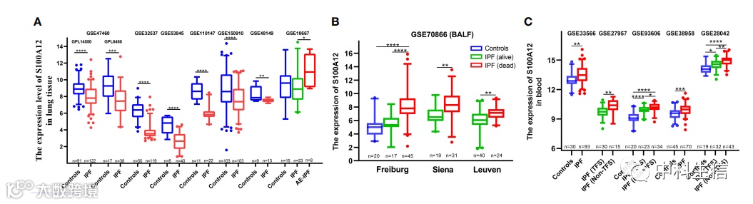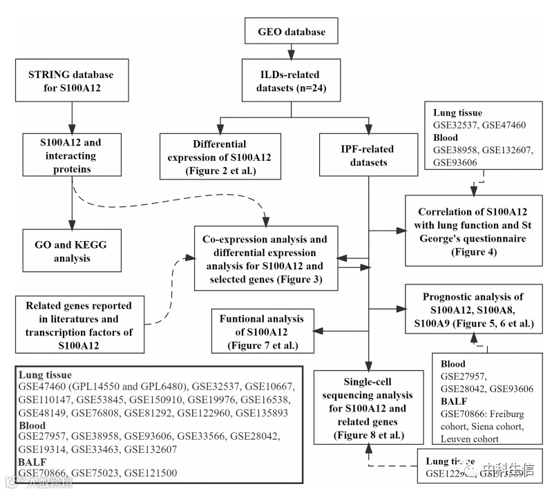 本次小编分享一篇2022年2月4日发表于Front Immunol的文献,题目为《S100A12 as Biomarker of Disease Severity and Prognosis in Patients With Idiopathic Pulmonary Fibrosis》,影响因子7.561。在本研究中,使用了Gene Expression Omnibus (GEO)数据库中的公开数据集来评估S100A12与肺功能之间的关系,以及S100A12在IPF患者中的作用。