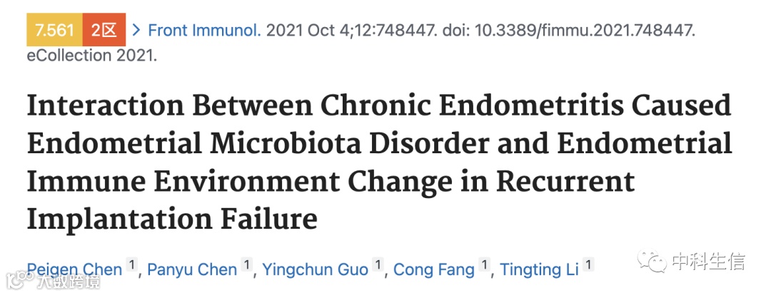 早上好,最近研究咨询多组学的老师日渐增多,但是毕竟不是每一位老师都能承受住多组学(说的就是你转录+蛋白+代谢)的实验和测序费用的,那么有没有一种测序方案既不需要那么多经费又能快速发文呢?今天它来了,这是一篇2021年11月发表在frontiers in immunogy(IF=7.561)的文章(Ref:34671363),作者研究的是慢性子宫内膜炎(CE)引起的子宫内膜菌群紊乱与复发性植入失败(RIF)子宫内膜免疫微环境变化的作用。