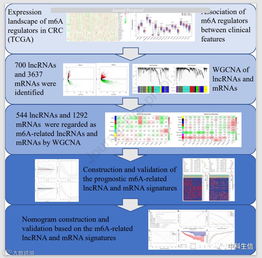 早!今天小编和大家分享一篇刚刚发表在Molecular Therapy: Nucleic Acid杂志(IF:8.86)的文章《Comprehensive analysis of N6-Methylandenosine regulators and m6A-related RNAs as prognosis factors in colorectal cancer》。作者研究的方面是m6A,m6A的热度已经过去,但是仍然发到了8+。我们来看看作者做了哪些分析吧!