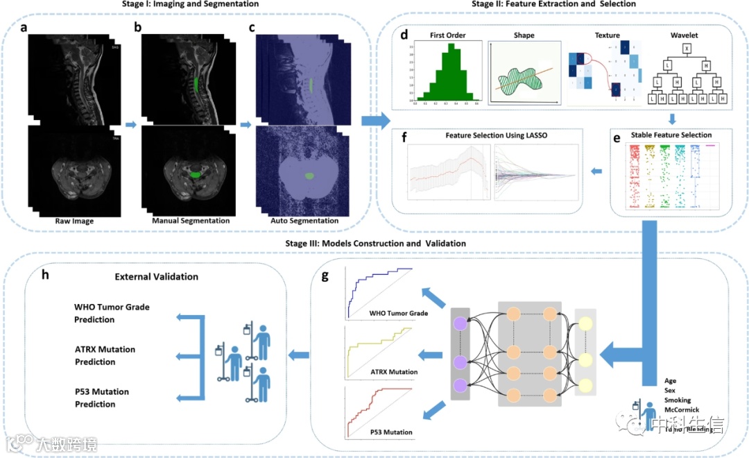 大家早上好!今天小编和大家分享一篇5月29日发表在BMC Medicine(IF:11.450)杂志上的题目为《Multimodal-based machine learning strategy for accurate and non-invasive prediction of intramedullary glioma grade and mutation status of molecular markers: a retrospective study》的文章。作者研究报告了一种新颖的机器学习策略,该策略首次基于多模态特征来预测髓内胶质瘤的ATRX和P53突变状态和分级。这些模型的广泛应用可以非侵入性地提供更多肿瘤特异性病理信息,用于确定髓内胶质瘤的治疗和预后。思路适用范围广,感兴趣的老师可以与我们联系。
