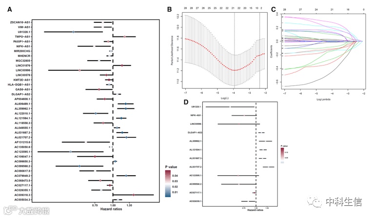 基于 LUAD 患者m6A 相关 lncRNA的风险模型的构建和验证