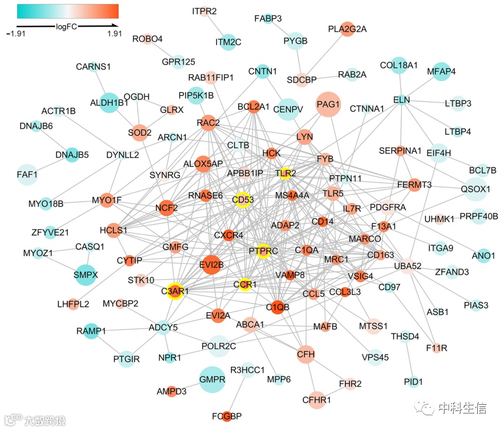 使用STRING数据库构建的DETregRGs的PPI网络(图2)。