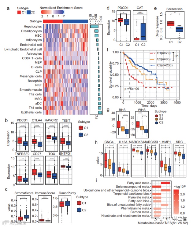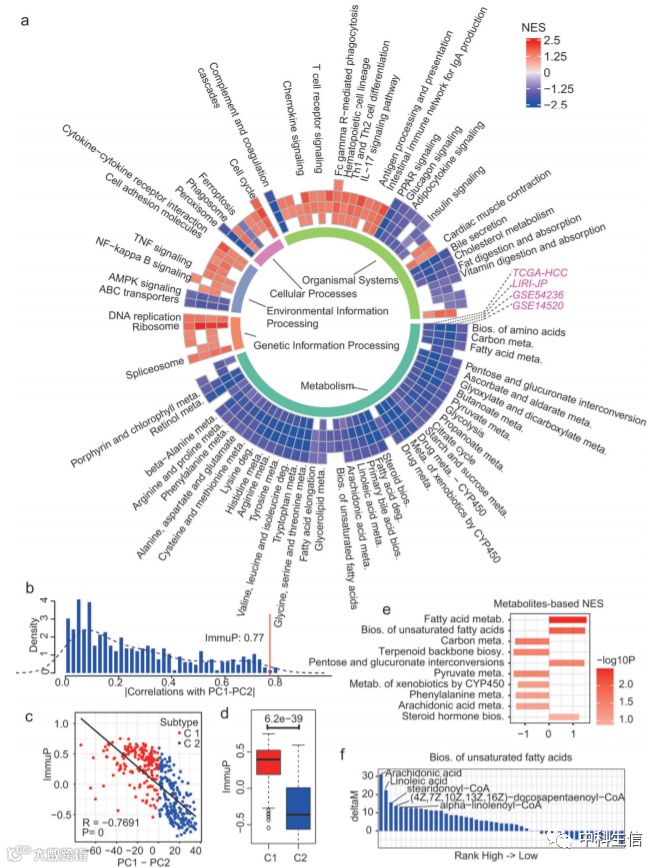 对两个亚型的差异基因进行GESA富集分析,还利用MPI 网络来定向估计不同亚型的代谢物改变。