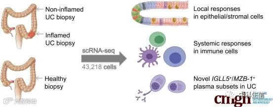 结论:我们的工作确定了UC的新型群体特异性浆细胞分子特征。UC的转录特征在炎症和非炎症组织的免疫细胞中都有,而对疾病的转录反应仅在炎症上皮/间质细胞中是一种局部效应。