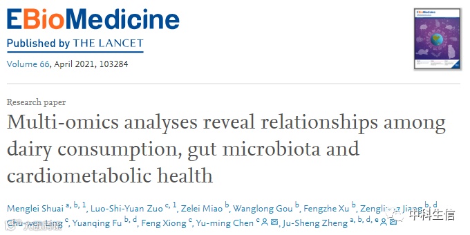 嗨,早上好!为了提高蛋白质的摄入,乳制品已经成为大家饮食结构中普遍存在的一部分。目前,很多研究表明乳制品还有别的功效,比如牛奶进入人体后,经消化酶水解的小肽可以降低血糖水平等等。今天小编给大家分享的一篇发表在Ebio Medicine(IF:6.68)杂志的文章Multi-omics analyses reveal relationships among dairy consumption, gut microbiota and cardiometabolic health,对乳制品摄入量、肠道微生物群和心脏代谢健康之间的相互作用进行了研究。下面我们就来看看吧!