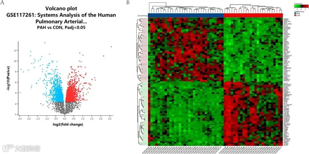 2,R 软件中的“limma”包用于筛选 PAH 和对照组之间的差异表达基因(DEG);