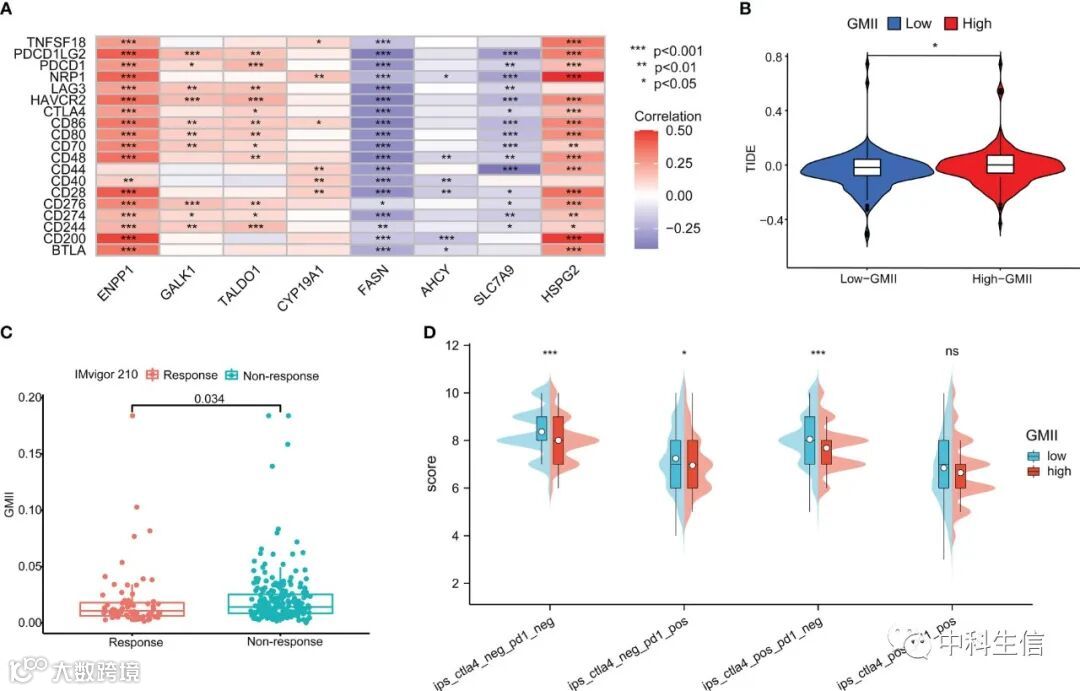 基于风险模型及其衍生的GMII对膀胱癌的多个方面的深入分析,我们发现GMII可以更好地预测BC患者的预后和免疫治疗反应。本研究从致癌氨基酸代谢重编程的角度,为发现新的预后和治疗性生物标志物和小分子药物靶点提供了有用的线索。在一个免疫治疗为各种癌症治疗提供了巨大希望的时代,GMII为膀胱癌的临床诊断和个体化综合治疗提供了指导。