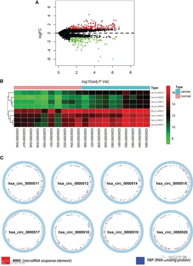 分享一篇2022年1月发表在Front Oncol(IF:5.738)《Identification of Circular RNA-Based Immunomodulatory Networks in Colorectal Cancer》(PMID: 35155186),作者通过鉴定来自RPPH1基因的circRNA并评估巨噬细胞与靶向基因之间的关联,进一步研究RPPH1在CRC分子背景中的作用。该研究方法同样适用于其他肿瘤或非肿瘤的研究,有相关需求的老师欢迎联系我们。