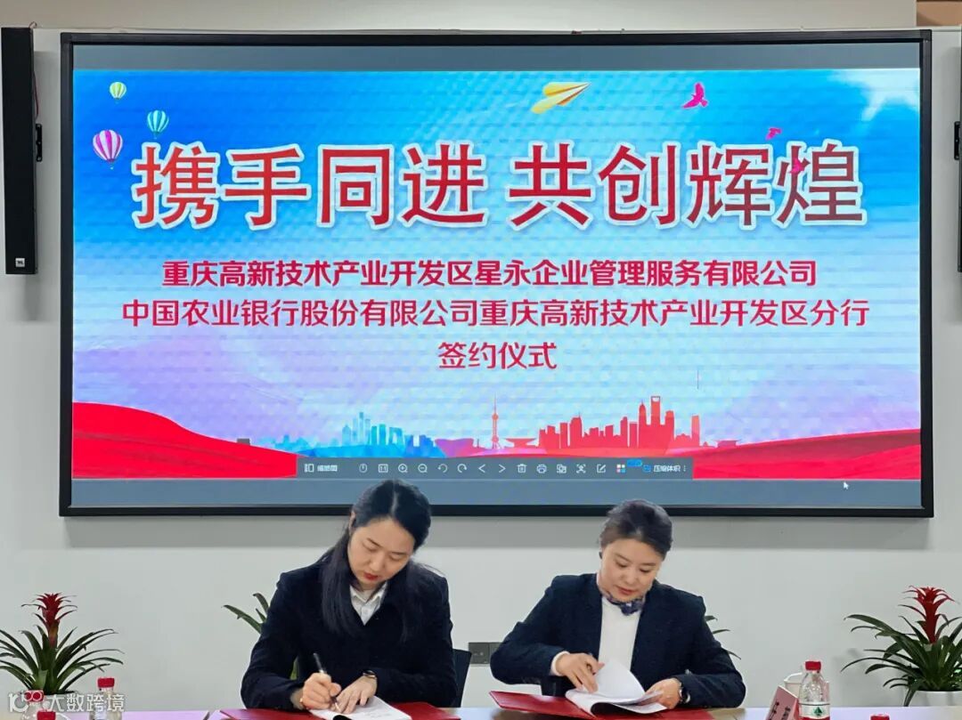 1月21日,爱永星辰高新园区与中国农业银行重庆高新分行签订战略合作协议,农业银行高新分行党委书记、行长瞿亚、农行高新分行党委委员魏莹莹、农业银行高新分行公司业务部经理李良清与爱永星辰企业服务公司总经理朱赟、重庆爱永星辰集团生态委员会主任舒展、重庆高新技术产业开发区星永企业管理服务有限公司总经理陈伟出席签约仪式。