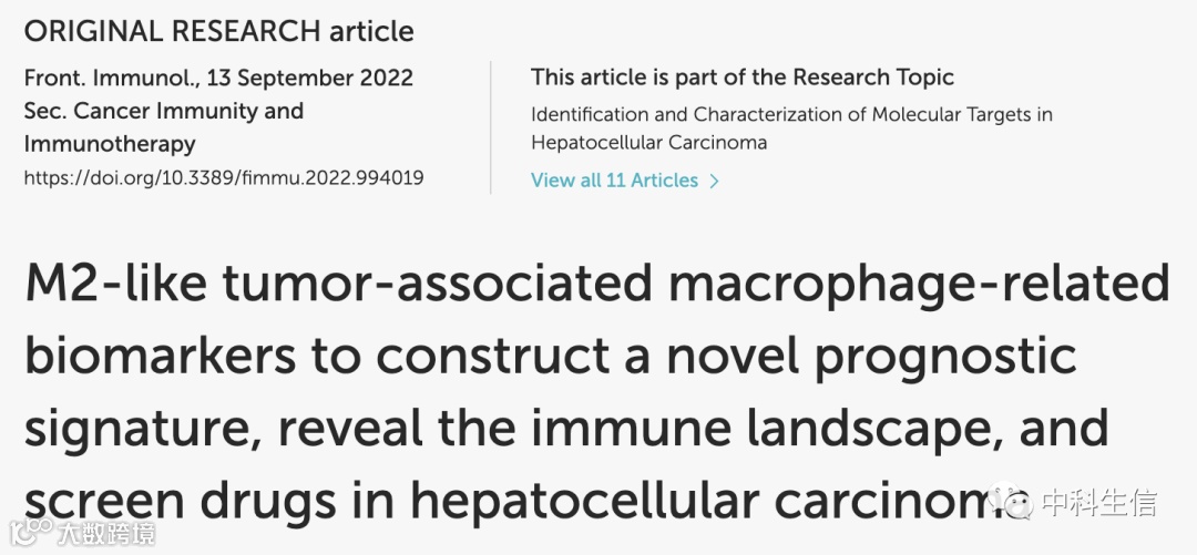 早上好,今天小编分享一篇2022年8月发表在Frontiers in Immunology(IF=8.786)的文章,作者主要研究M2 样肿瘤相关巨噬细胞(M2 样 TAM)在肝细胞癌 (HCC) 的进展和治疗中具有重要作用,通过scRNA-seq和bulk RNA-seq构建M2样TAM相关生物标志物。