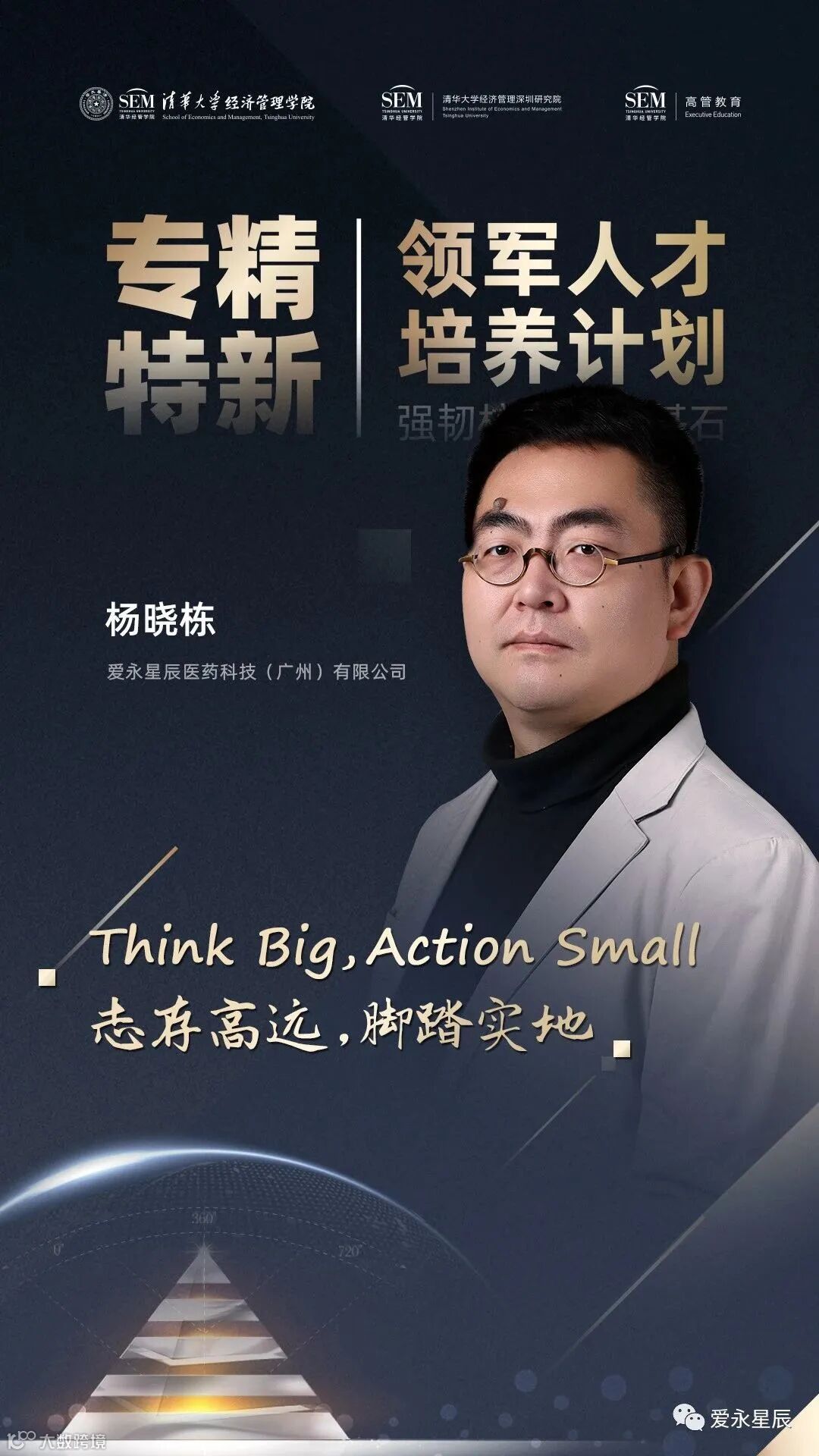 爱永星辰集团旗下爱永星辰医药科技(广州)有限公司CEO杨晓栋先生,作为清华经管学院专精特新领军人才培养计划首期班学员,正式开课前,写下了自己的座右铭“志存高远,脚踏实地”,以此激励、警诫、提醒自己。