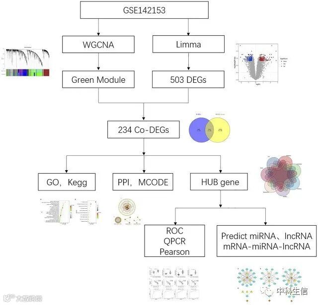 早上好,今天分享一篇2021年12月发表在Front Genet(IF=4.772)的文章,Identification of Hub Genes and Potential ceRNA Networks of Diabetic Nephropathy by Weighted Gene Co-Expression Network Analysis(PMID: 34790229),作者确定了糖尿病肾病早期诊断的标志物,并深入了解了糖尿病肾病在转录组水平上的发展机制。该研究方法同样适用于其他肿瘤或非肿瘤的研究,有相关需求的老师欢迎联系我们!