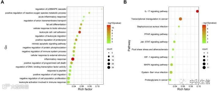 为了进一步探索Co-DEG的生物学功能,进行了GO和KEGG通路分析(图5A、B)。