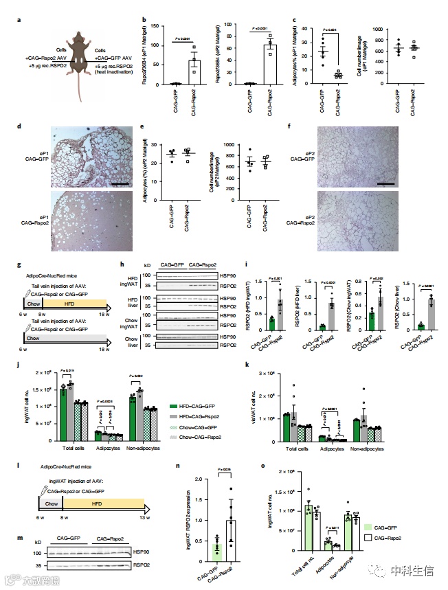 图4.Rspo2在体内抑制eP1细胞的脂肪生成。