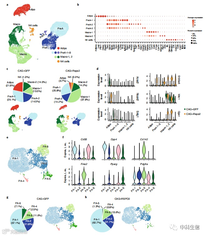 图7.snRNA-seq显示Rspo2降低体内脂肪细胞数量。