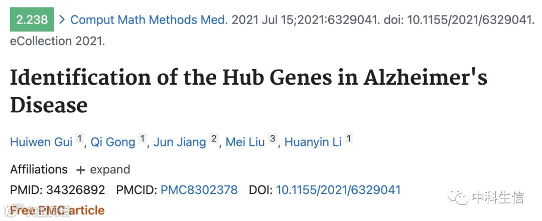 分享一篇Computational and mathematical methods in medicine在2021年7月发表的文章《Identification of the Hub Genes in Alzheimer's Disease》,作者使用生物信息学分析研究了阿尔茨海默病(AD)的hub基因。该研究方法同样适用于其他肿瘤或非肿瘤常见病的研究,有相关需求的老师欢迎联系我们