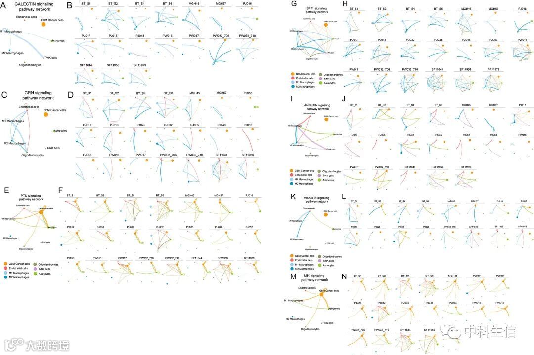 分别对所有样本和每个样本进行了细胞通讯分析,以探索 GBM 癌症微环境中的稳健信号通路。
