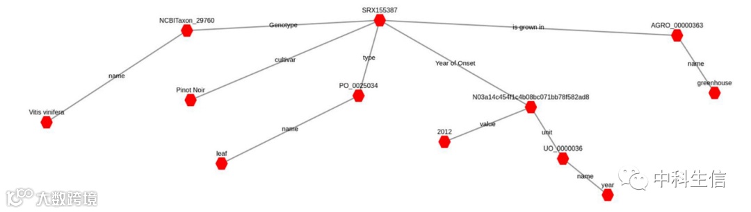 RDF数据模型是一种通过定义实体之间的关系来描述数据的通用方法。每个RDF语句都是由一个主语、一个谓语和一个宾语组成的三部分结构。每个RDF术语要么是样本ID,要么是基因ID,要么是本体术语,要么是文字,要么是字符串或数字。