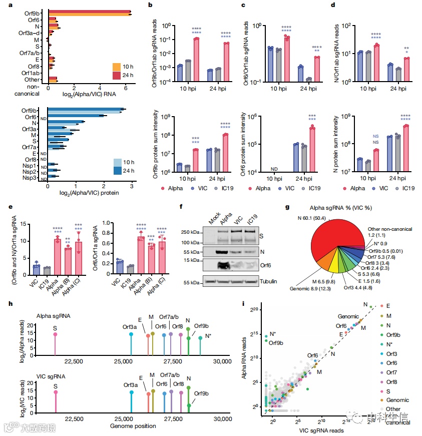 图3.SARS-CoV-2 Alpha变体在亚基因组RNA和蛋白质水平上调固有免疫拮抗剂。