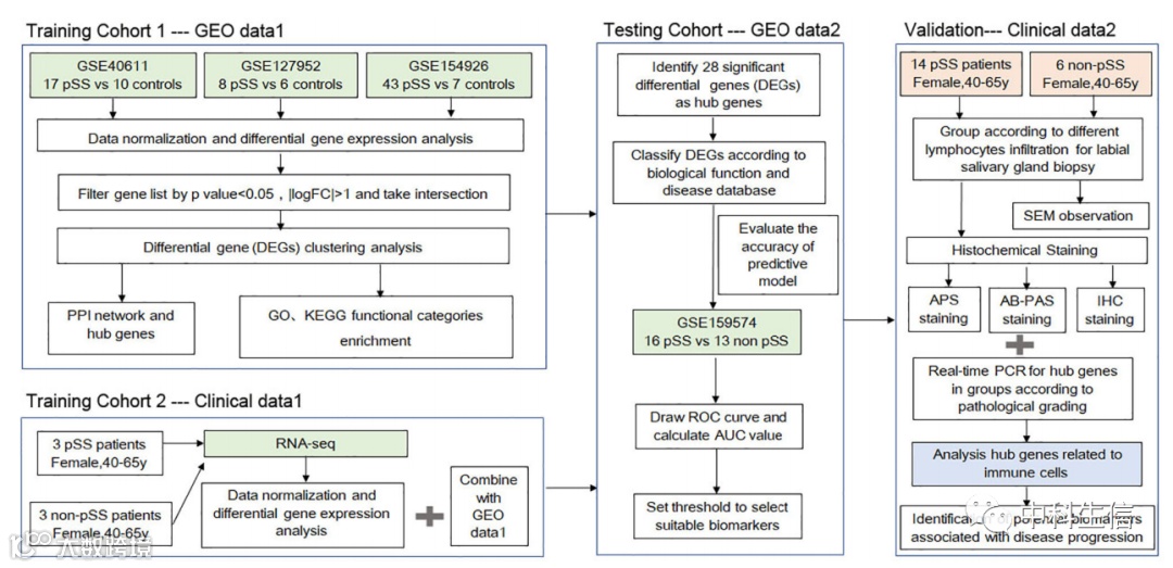 图1.该示意图显示了当前研究中用于识别原发性干燥综合征(pSS)进展相关的潜在生物标记物的方案。