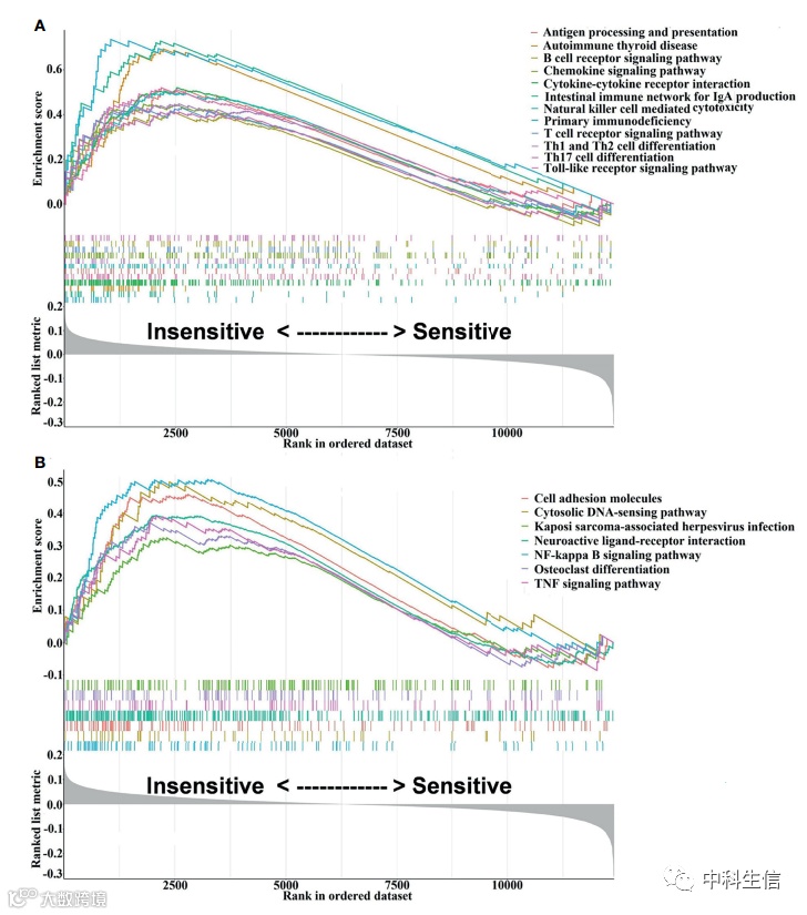 作者通过GSEA富集分析,在化学敏感和不敏感亚组之间富集了48个信号通路,发现BC患者化学不敏感状态不仅与肿瘤的增殖、侵袭和转移有关,还与免疫应答的活性和肿瘤免疫浸润有关。之后通过差异基因分析得到了差异表达基因(DECRGs)。
