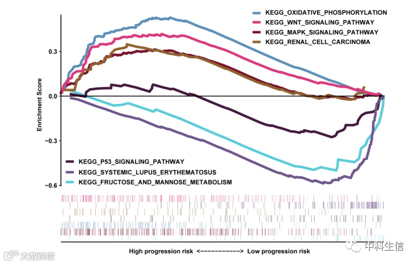 GSEA结果显示(图7),在两个列线图评分水平之间,生物过程显著丰富。