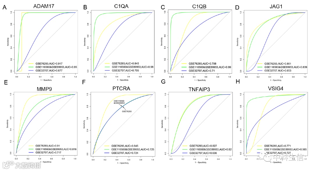 C1QA, C1QB, MMP9, PTCRA 和 VSIG4也许可以作为ARDS的诊断生物标志物,因为基于这5个基因在三个数据集中做的ROC曲线AUC>0.7,另外,在ARDS患者中CGSVA score显著高于对照组。