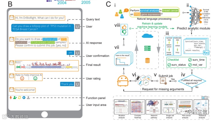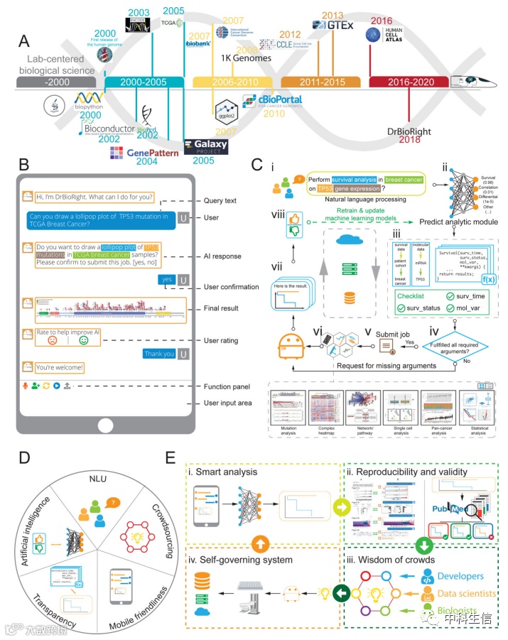 日益增多的组学数据对信息学提出了严峻的挑战。DrBioRight是一个面向自然语言和人工智能驱动的分析平台,使广泛的研究社区能够以直观、高效、透明和协作的方式进行分析。新一代分析技术将最大限度地利用组学数据,为生物医学研究开辟新的范式。