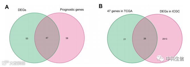 在TCGA中筛选出329例HCC患者的脂肪酸代谢相关基因及相应的表达谱。首先,通过单变量 Cox分析确定了 105 个与总生存期 (OS) 相关的脂肪酸代谢相关基因,交叉筛选出47个与OS相关的差异表达的脂肪酸代谢相关基因。然后,通过分析ICGC数据库中的DEGs,对47个选定的脂肪酸代谢相关基因进行验证,并筛选出26个基因。