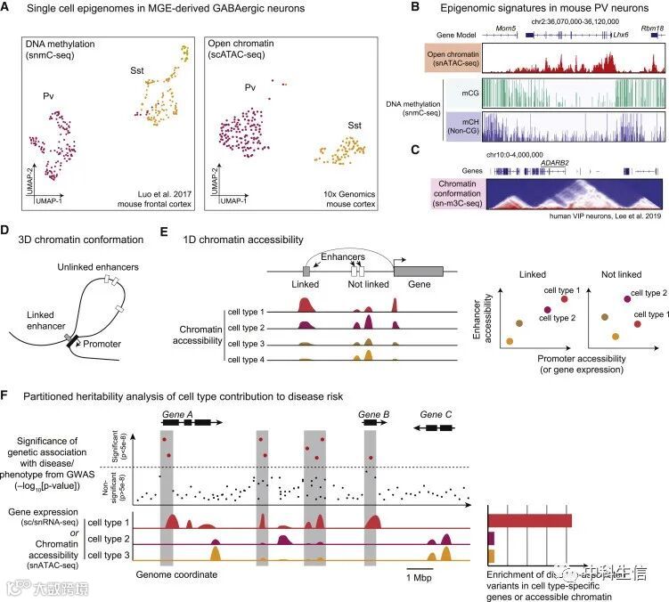 单细胞表观基因组可以用于分析测量DNA甲基化、染色质可及性和/或染色质构象。这些DNA的化学和物理修饰在发育过程中形成,并在整个生命周期中调节基因表达。转录组是基因表达的快照,部分反映了细胞状态和组织收集前后神经活动的影响,表观遗传标记包括长寿命染色质组分的短暂和稳定修饰。表观基因组数据还揭示了顺式调控元件,如增强子,建立和维持细胞类型特异性基因表达。