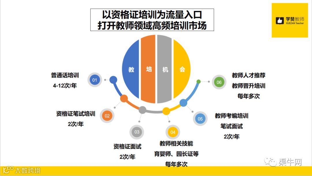 项目以资格证培训为流量入口,打开教师领域高频培训市场,提供不同维度的全方位的培训及相关就业服务。