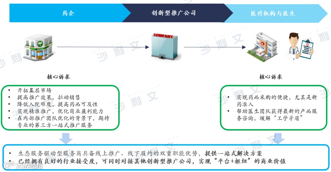 相比其他类型的创新型医药推广解决方案玩家,生态服务驱动型玩家能够最大化地满足药企的实际需求,为药企带来实际的药品推广及销售成果。