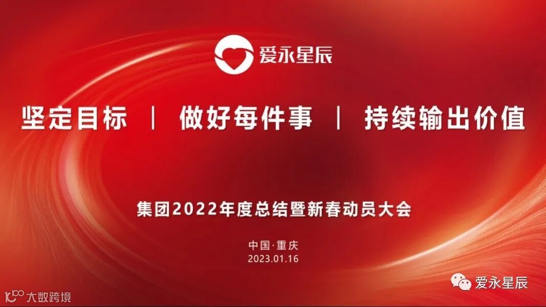 2023年1月16日-18日,爱永星辰集团以“坚定目标 做好每件事 持续输出价值”为主题的年度总结大会暨年会盛典在重庆隆重召开,重庆总部及全国园区所有员工出席,吹响了爱永星辰集团2023年发展的新号角。爱永星辰人相聚一起盘点2022年工作情况,谋划部署好新一年工作。