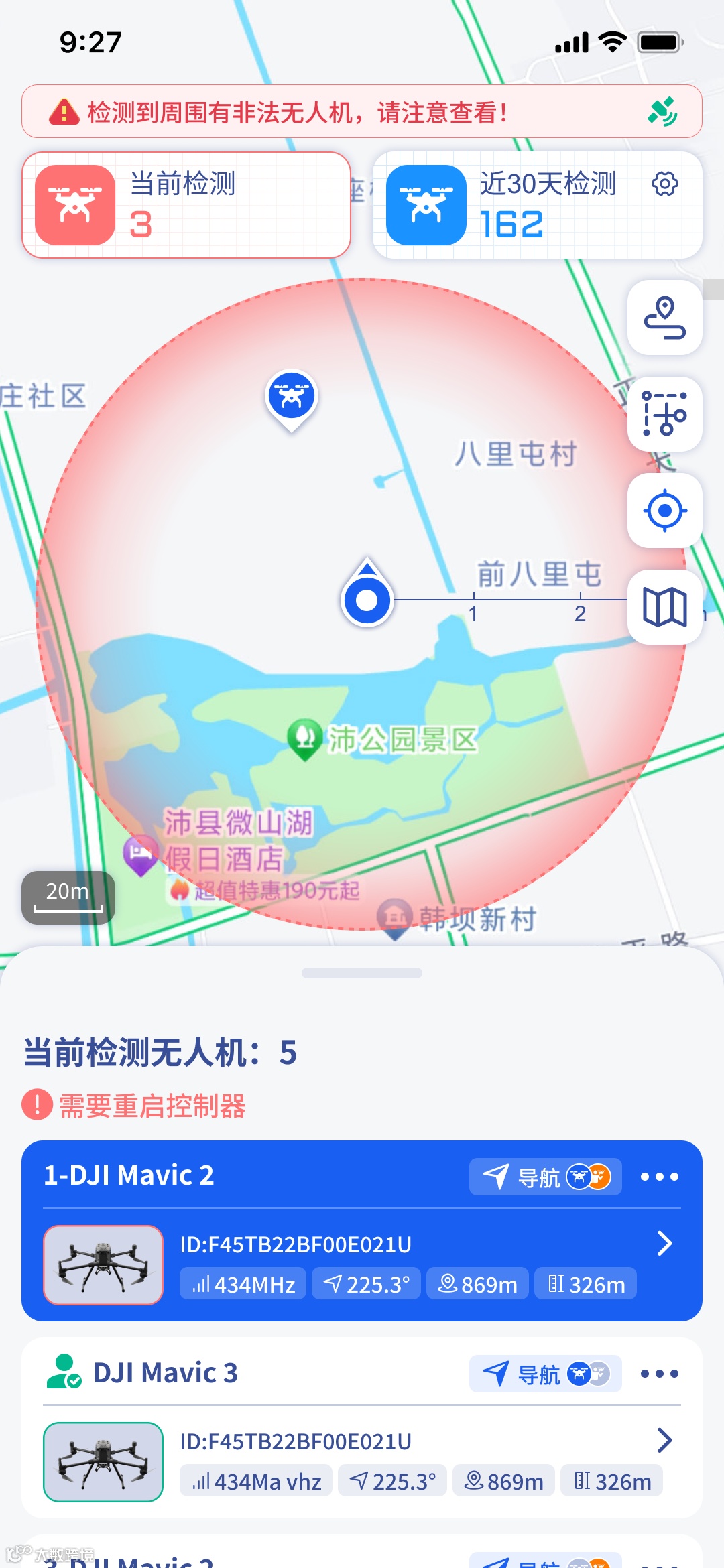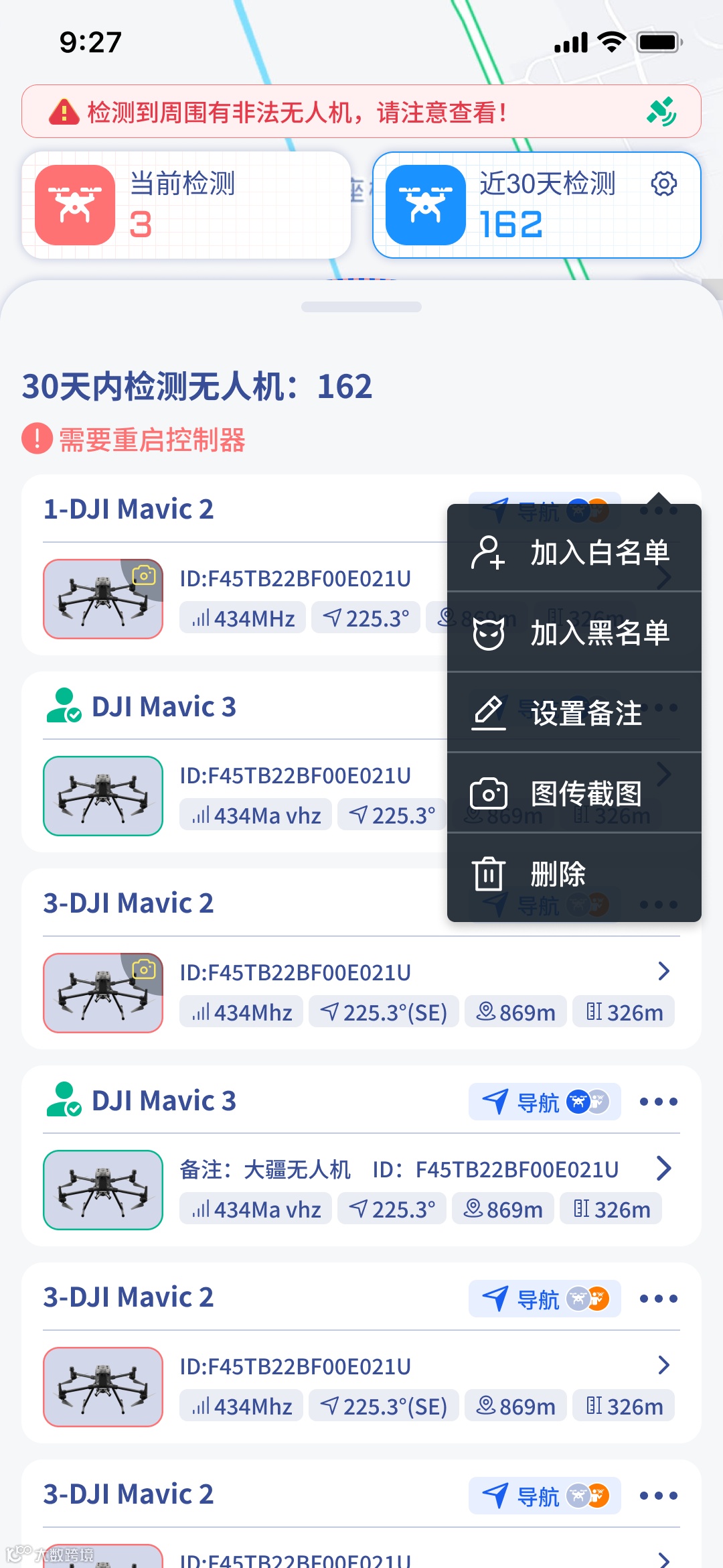 同品牌、同型号、同频段的不同架次无人机精准识别,支持合并同架次无人机的入侵记录