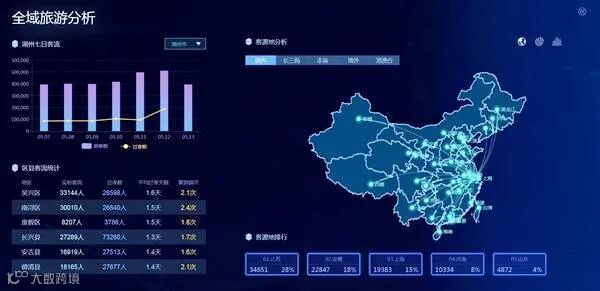 大数据中心主要是实现对旅游产业运行可视化监管、旅游客流实时可视化监测和旅游服务质量监督检查等功能。