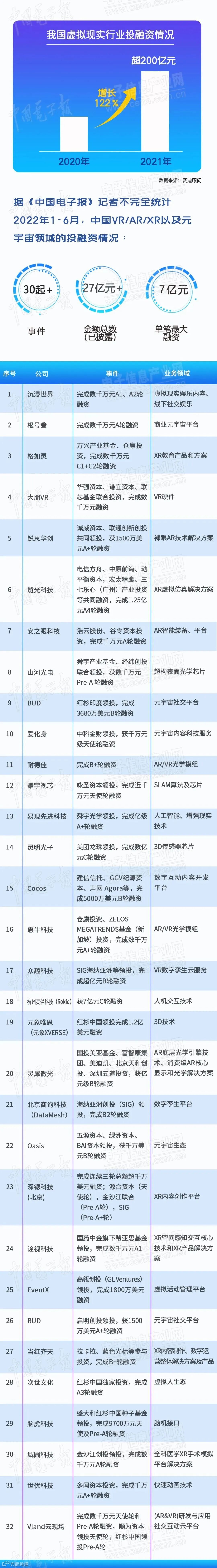 如今,元宇宙作为风靡全球的流量热词,正带动我国虚拟现实行业出现新一轮的投资热潮。那么,今年上半年相关领域的投融资情况如何呢,快和小编来看看吧!