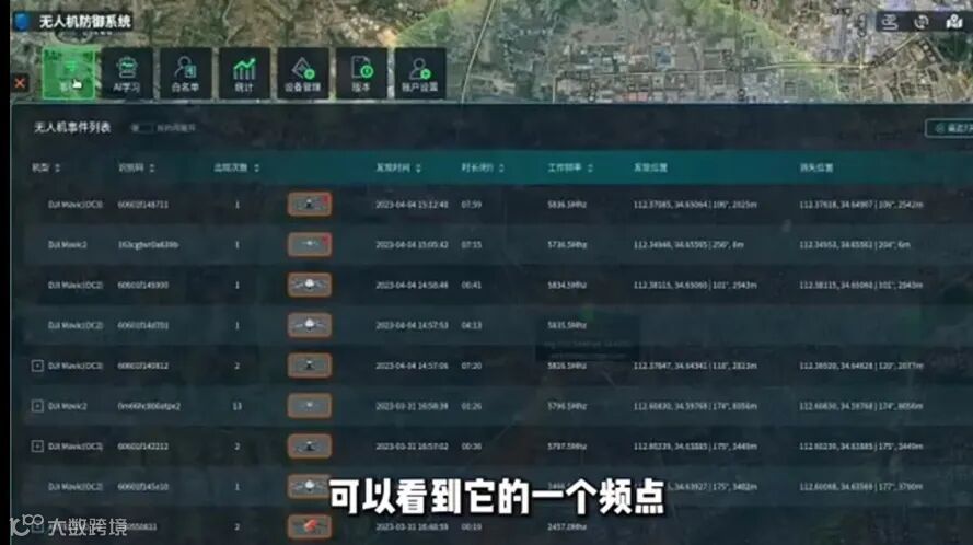 该设备可以针对无人机的位置和飞手位置进行侦测和定位,例如大疆Mavic3,我们可以看到频点和SN码。