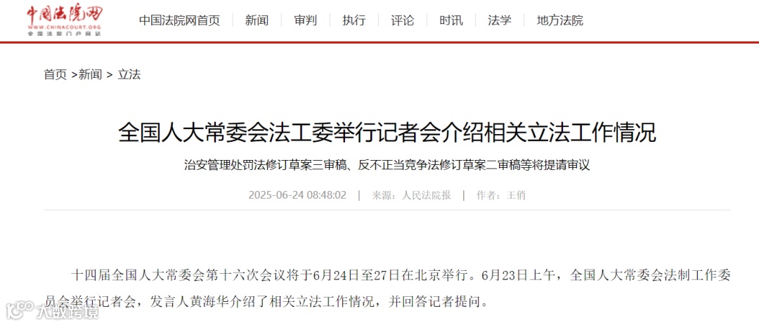 6月23日,全国人大常委会法制工作委员会举行记者会。