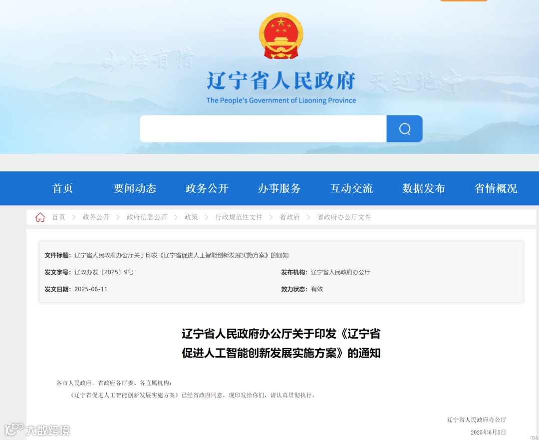 6月11日,辽宁省政府办公厅印发《辽宁省促进人工智能创新发展实施方案》。