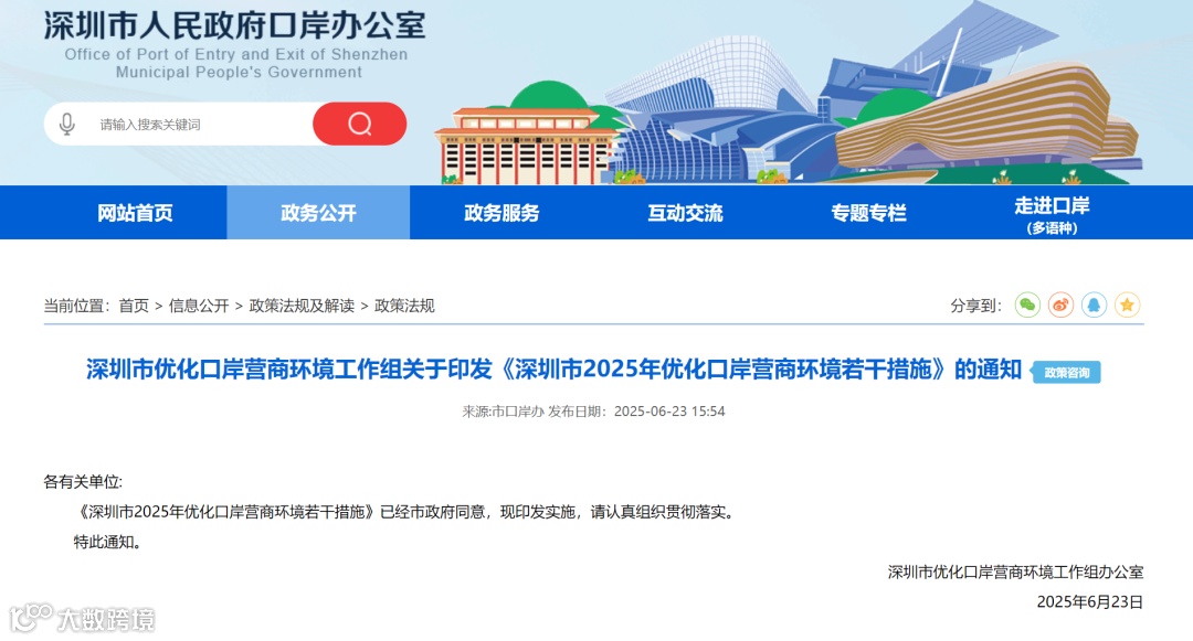 6月23日,深圳市口岸办公室牵头制订的《深圳市2025年优化口岸营商环境若干措施》正式实施。