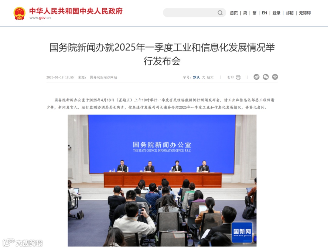 4月18日,国新办举行新闻发布会介绍2025年一季度工业和信息化发展情况。