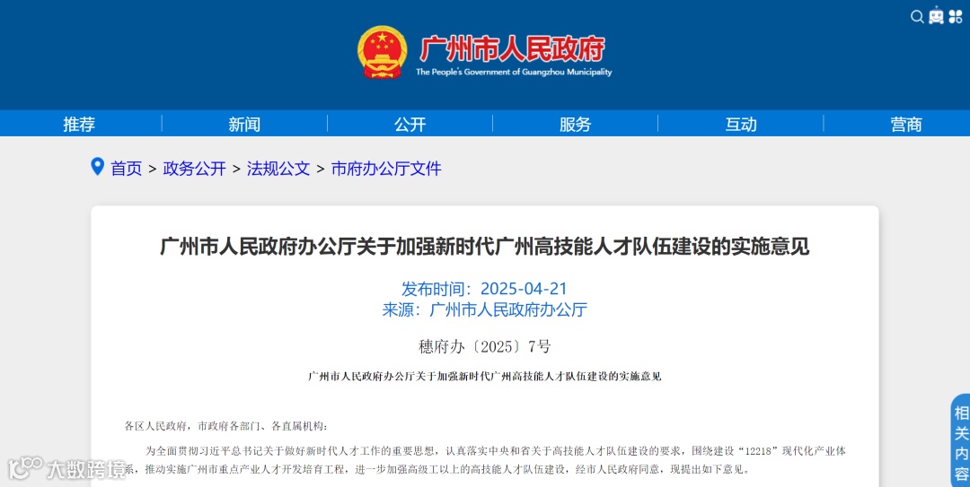 4月21日,广州市政府办公厅印发《关于加强新时代广州高技能人才队伍建设的实施意见》。