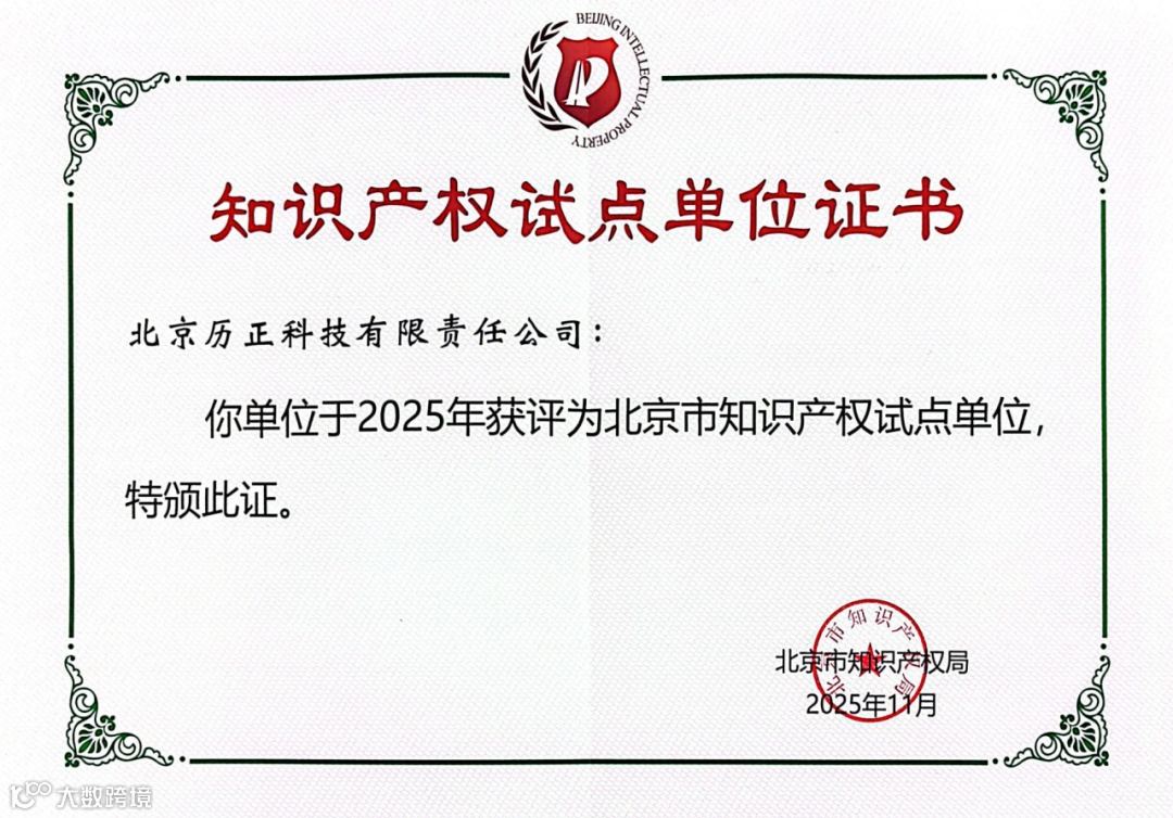 据悉,此项授牌并非历正科技近期获得的唯一权威认可,11月,历正科技被北京市知识产权局正式评定为“北京市知识产权试点单位”。