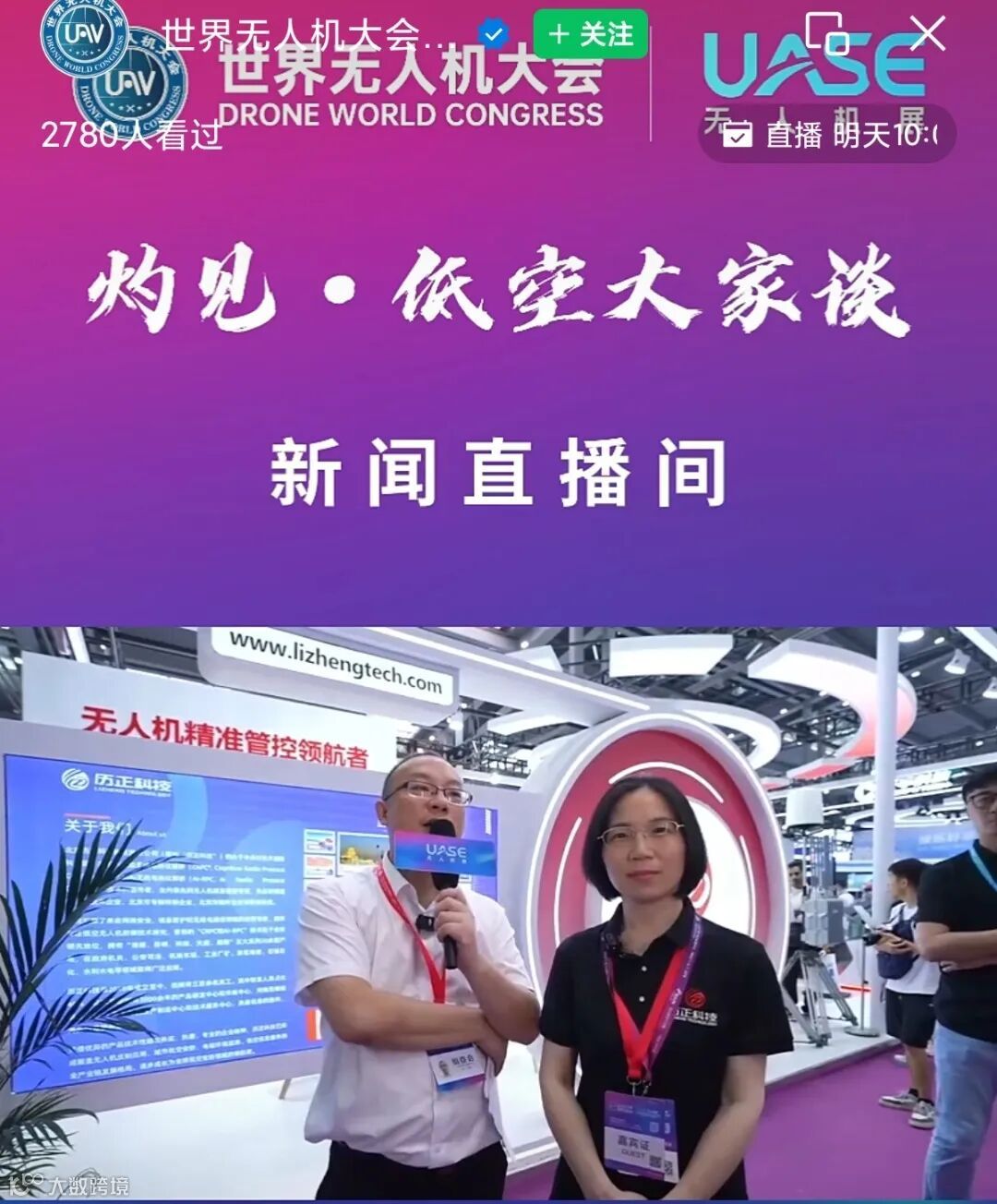 大会期间,世界无人机大会特别策划“灼见·低空大家谈”主题直播活动,历正科技副总经理高旭娜和副总经理许硕分别在直播间和展位参加直播活动,与行业专家共同探讨低空安全技术的前沿趋势。