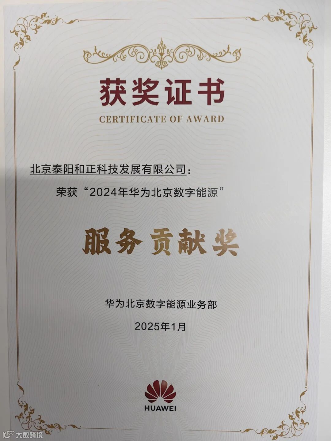 热烈祝贺北京泰阳和正科技发展有限公司在2025年初,斩获华为全球卓越贡献伙伴奖、风雨同舟奖、服务贡献奖!