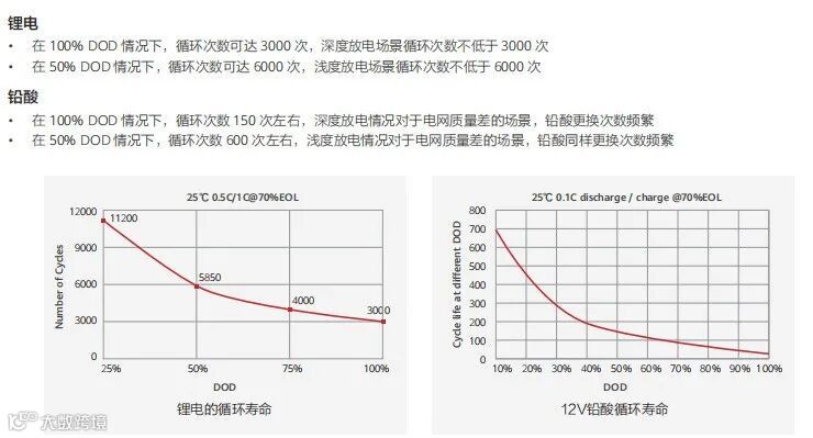 锂电和铅酸电池的循环寿命曲线